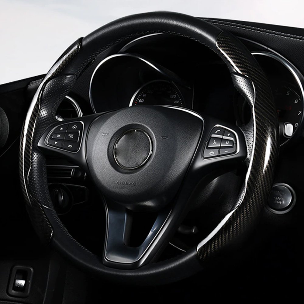 سق بأمان وراحة في حر الصيف. كفر الدريكسيون بتصميم الكاربون فايبر يوفر لك قبضة قوية مضادة للانزلاق ويحمي طارة سيارتك من التآكل. يضيف لمسة عصرية وتركيبه سهل في ثوانٍ.