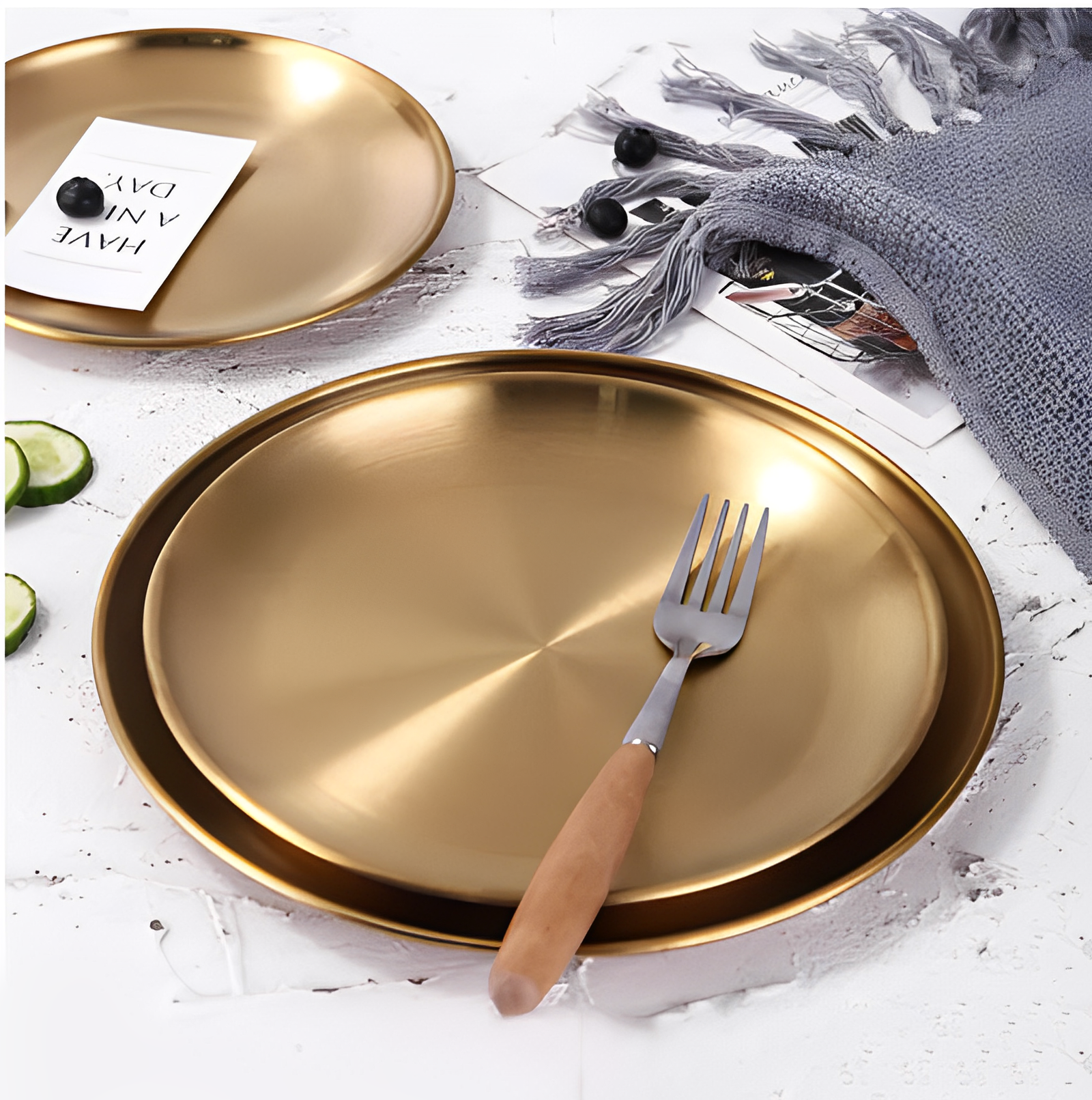أضيفي لمسة من الفخامة والأناقة إلى سهرات الصيف وجمعات العائلة في المصيف. الطبق الذهبي للتقديم هو اختيارك المثالي لتقديم أشهى المأكولات والفاكهة لضيوفك بطريقة تخطف الأنظار وتعبر عن ذوقك الرفيع.