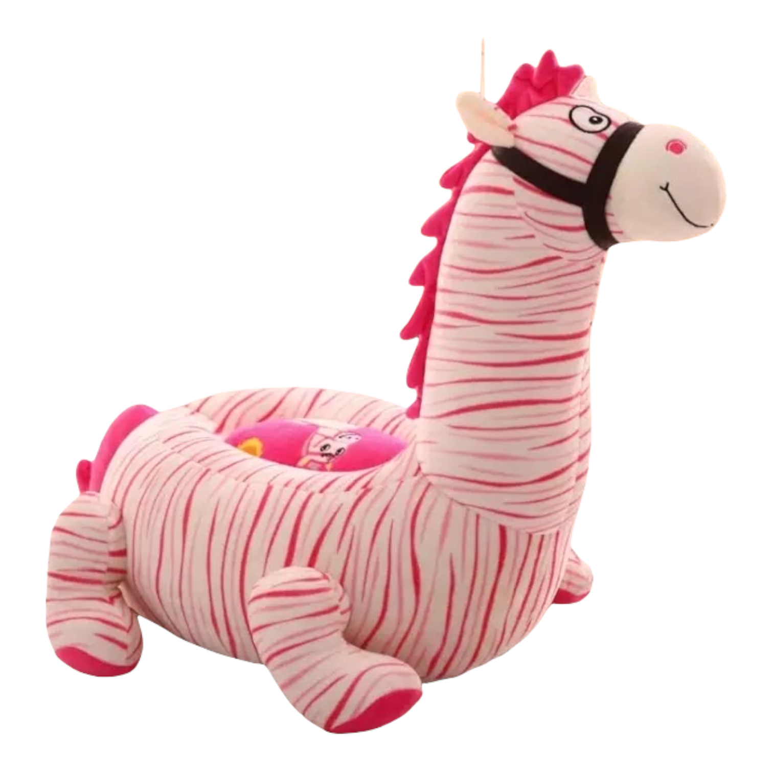 يأتي الكرسي على شكل حصان لطيف بلون كريمي وخطوط وردية تخطف الأنظار. تم تصنيعه من خامات مستوردة عالية الجودة ومحشو بالفايبر الناعم، مما يجعله آمنًا ومريحًا على بشرة طفلك الحساسة.