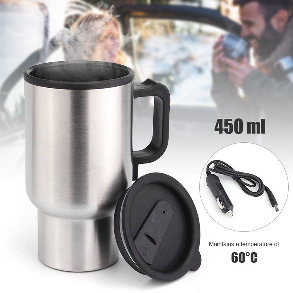 استمتع بمشروباتك ساخنة دائمًا أثناء القيادة. مج السيارة الحراري بسعة 450 مل، يعمل على ولاعة السيارة لتسخين قهوتك أو الشاي والحفاظ على حرارته. مصنوع من الاستانلس ستيل ومزود بغطاء محكم لمنع الانسكاب.